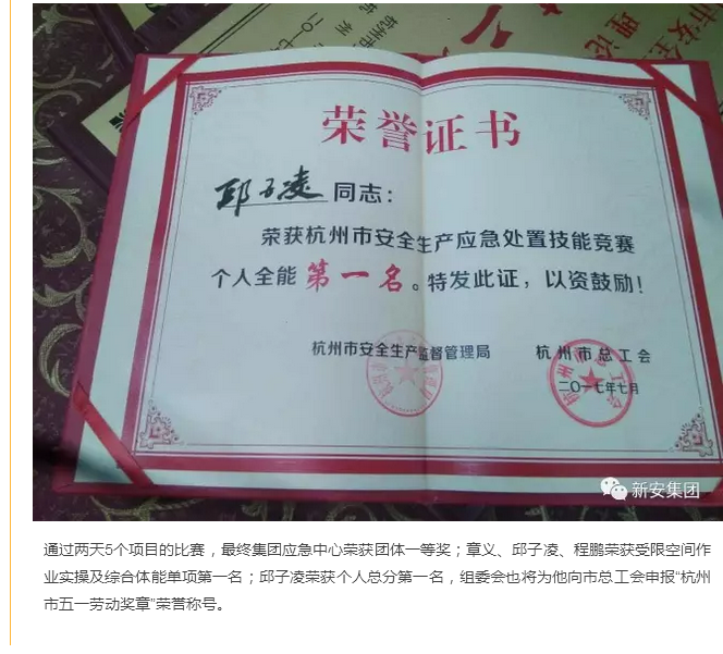 凯发k8国际首页登录集团获2017年杭州市安全生产应急处置技能竞赛第一名